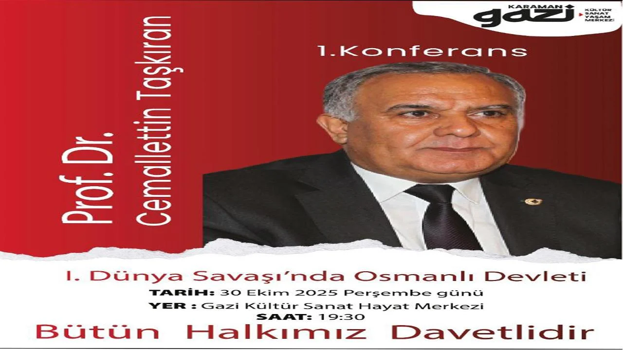 Taşkıran’ın Gazi Kültür Merkezi’ndeki ilk Konferansı 30 Ekim 2025 Perşembe günü saat19,30’da Cumhuriyet’e Giden Yolda “1. Dünya Savaşı’nda Osmanlı Devleti” konusunda olacak.