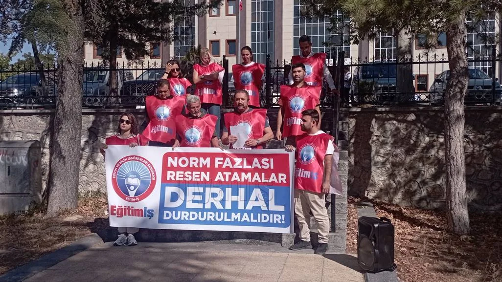 Yeni eğitim öğretim yılının başlamasına sayılı günler kala Eğitim-İş Karaman Şubesi, İl Milli Eğitim Müdürlüğü önünde 'norm fazlası' atamaları ve alan dışı görevlendirmeleri protesto etti.