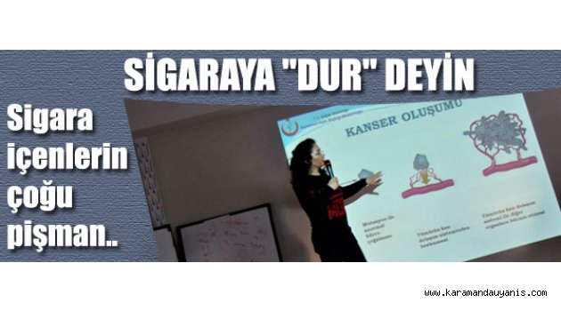 Yaklaşık 200 kişinin katıldığı seminer Karaman Halk Sağlığı İl Müdürlüğü'nde görev yapan Uzman Hemşire Handan Altunkan ve Haşim Aydın tarafından verildi. Uzman Hemşire Altunkan idarecilere ve öğrencilere, "Sigara akciğer kanseri ölümlerinin yüzde 90’ından, tüm kanser ölümlerinin yüzde 30’undan, bronşit ölümlerinin yüzde 75’inden, kalp krizi ölümlerinin yüzde 25’inden sorumlu Akciğer kanseri, kanser ölümlerinin birinci sırasında yer alır.