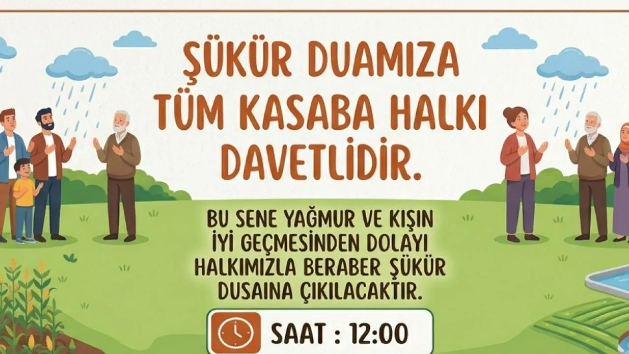 Belediyeden yapılan paylaşımda, bu yıl yağmur ve kışın iyi geçmesinden dolayı şükür duasına çıkılacağı duyuruldu.