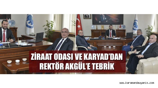 Ziraat Odası Yönetim Kurulu Başkanı Recep Muğlu ve Başkan Vekili Mehmet Bayram ile Meclis Başkanı Mustafa Kansız ziyarette KMÜ Rektörü Prof. Dr. Mehmet Akgül’ü tebrik ederek hayırlı olsun dileklerini iletirken Rektör Akgül de Karamanoğlu Mehmetbey Üniversitesi olarak Karaman’ın tarım sektöründeki gelişimine destek vermekten gurur duyacaklarını söyledi.