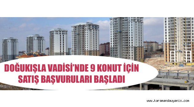 Karaman Doğukışla Vadisi 1.Etap projesi kapsamında tamamladığı 9 konut için satış başvurularının başladığını açıkladı.