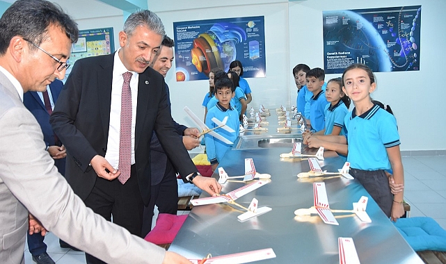 Daha sonra öğrencilerle birlikte maket uçak uçuran Vali Akkoyun, Görsel Sanatlar atölyesinde öğrenciler tarafından üretilen ebru eserlerini inceleyip öğrencilerle birlikte suya ebru nakşetti.