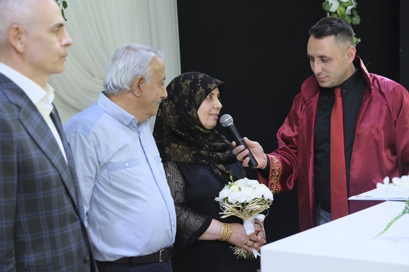 Mümine Hatun Nikah Salonu’nda düzenlenen nikah törenine İl Emniyet Müdürü Mehmet Turhan, İl Jandarma Komutan Vekili J. Albay Mustafa Özdemir, Aile ve Sosyal Hizmetler İl Müdürü Seval Yılmaz ve çiftin yakınları katıldı.