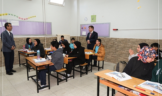 İl Milli Eğitim Müdürü Mehmet Çalışkan’ın da eşlik ettiği okul ziyareti sırasında bir araya geldiği öğrencilerimizle hedeflerine ve ileride olmak istedikleri mesleklere yönelik sohbet eden Vali H. Engin Sarıibrahim, hayata ve geleceğe dair tavsiyelerde bulunduğu öğrencilerimize derslerinde başarılar diledi.
