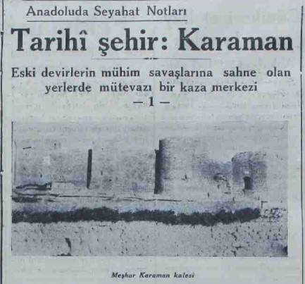 24 Teşrinievvel (Ekim) 1934 tarihli Zaman Gazetesinin “Vilayet Haberleri” serlevhasının alt başlığı; “Anadolu’da Seyahat Notları” kısmında Karaman’a dair izlenimlerini aktarmıştır.