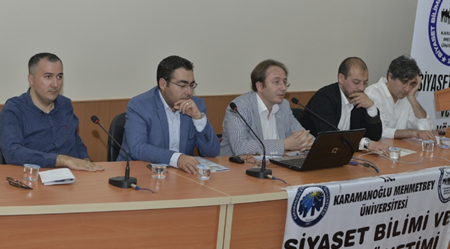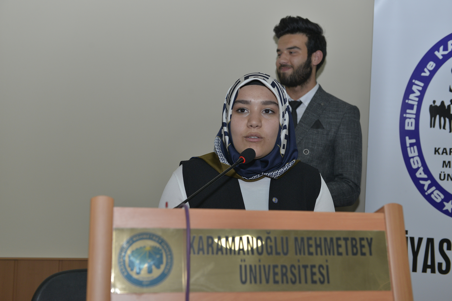 KMÜ’de düzenlenen “Yerel Yönetimlerde Güncel Sorunlar” konulu panelin açılış konuşmasını Siyaset Bilimi ve Kamu Yönetimi Öğrenci Topluluğu Yönetim Kurulu Üyesi Şeyma Yanartaş yaptı.