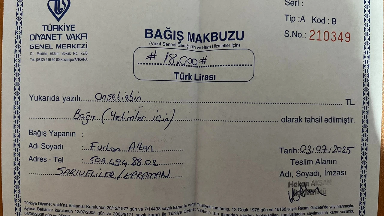 Sarıveliler Merkez Camii İmam Hatibi Furkan Alkan'ın koordinesinde yürütülen projede tüm çocuklara 600 TL olmak üzere toplamda 18.000 TL teslim